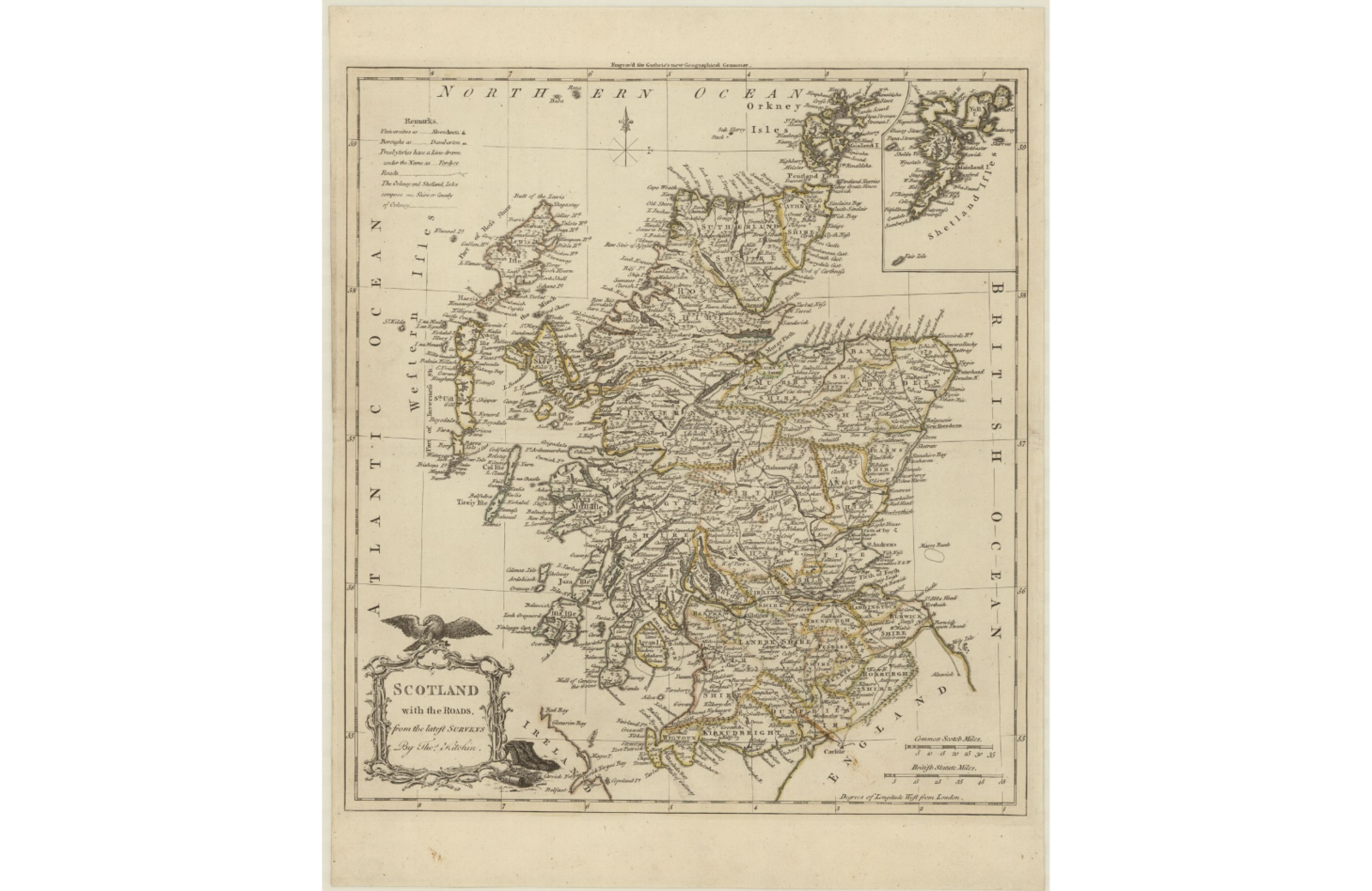 Ask students to point out details on the map of Scotland. Why a road map? How might one have traveled these roads? Facilitate a discussion on what life might have been like in rural Scotland. Why does Smith say that every farmer must be their own butcher, baker, and brewer?