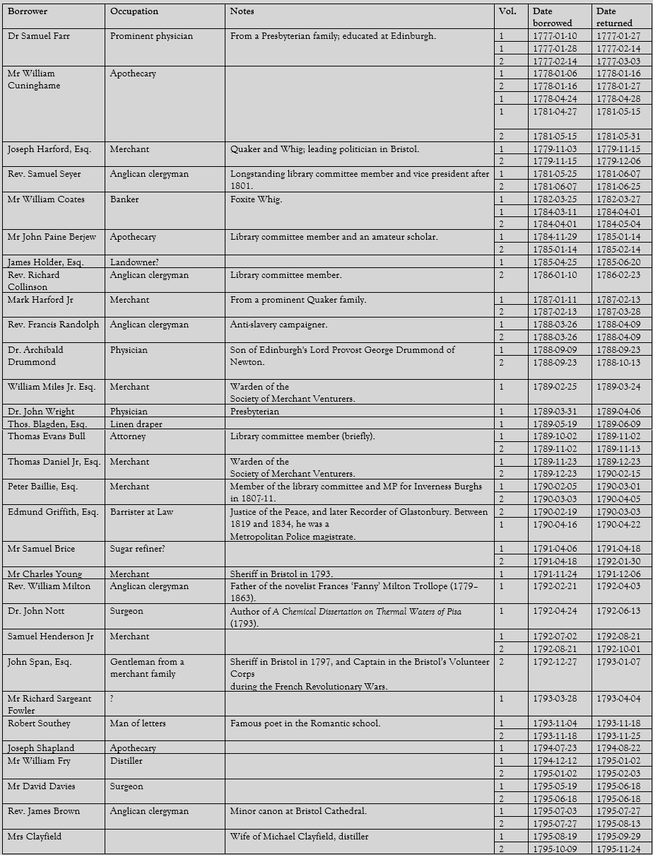 Appendix 2: Borrowers of WN at the Bristol Library Society, 1773-1795