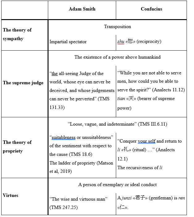 Here I have offered several comparisons between Smith and Confucius. The chief comparisons are presented in the following figure: