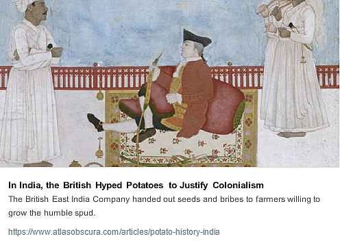 So the East India Company pushed for potato cultivation to try to raise their rents. It didn't really make sense if you knew as much about India as, say, Indians did. But when did that ever stop colonists? #DigressionOnPotatoes (I.xi.b.39–42) #WealthOfTweets #SmithTweets
