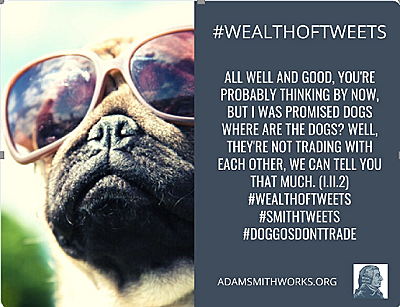 All well and good, you're probably thinking by now, but I was promised dogs. WHERE ARE THE DOGS? Well, they're not trading with each other, we can tell you that much. ? ? (I.ii.2) #WealthOfTweets #SmithTweets #DoggosDontTrade