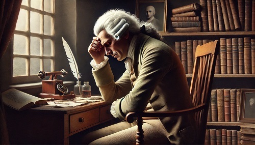 Okay, so this is super interesting. Smith has fairly late in his life to substantial losses. He loses his best friend, his probably friend of longest standing and of greatest intellectual equality, someone who is an intellectual fellow traveler, someone with whom he corresponds about his work, his dear friend, the great philosopher David Hume Smith loses, I believe shortly after the publication of the Wealth of Nations. And then later on after that, Smith loses his mother when she is 90. He lived with her for nearly all of his adult life, so they were very, very close. And so he has these two enormous losses of people who are very, very dear to him.