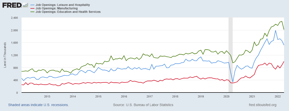 Chart 3: Job Openings for Leisure and Hospitality, Manufacturing, and Education and Health Services