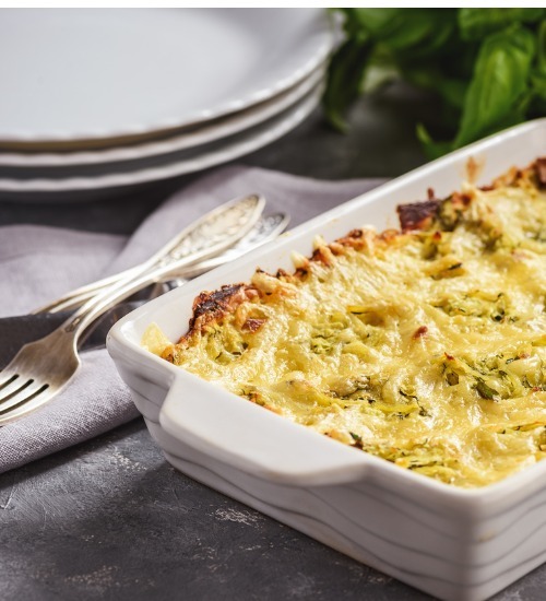 5. Put the mixture into the baking dish. Top with the cheese. Bake 25-30 minutes until the top is crusty and browned.