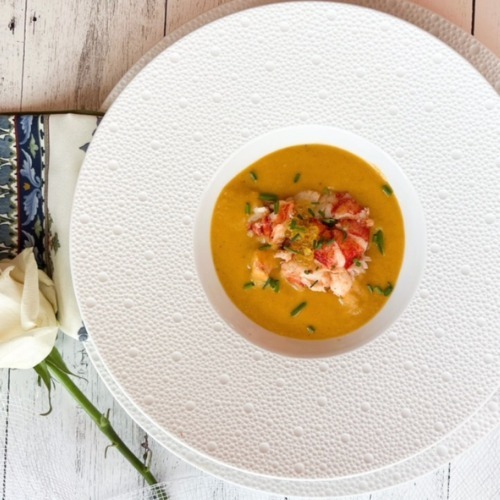 8. Serve in piping hot bowls and garnish with the lobster meat and chives. You can substitute crab meat, langoustine, or even small shrimp for the lobster. To make the soup vegetarian, omit the seafood and reserve ½ cup of chopped chestnuts for the garnish.